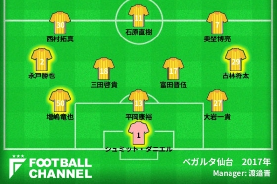 ベガルタ仙台、2017年の基本フォーメーション(黄色は新加入選手)
