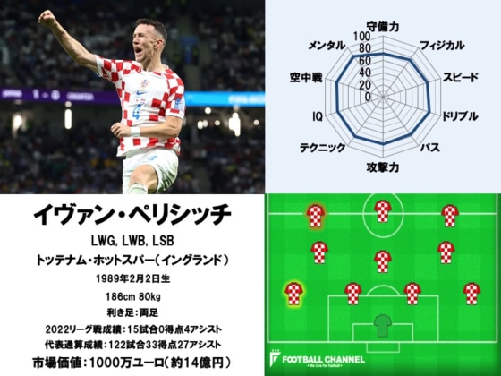 そして、186cmの長身と高いジャンプ力を活かした「空中戦」の強さも特筆すべき点だ。クロアチア代表にはルカ・モドリッチがいるため、ペリシッチはセットプレー時にゴール前のターゲットとしても機能する。33歳になっても衰え知らずのペリシッチは、2大会連続ベスト4以上進出のクロアチア代表に不可欠な存在であり続けている。