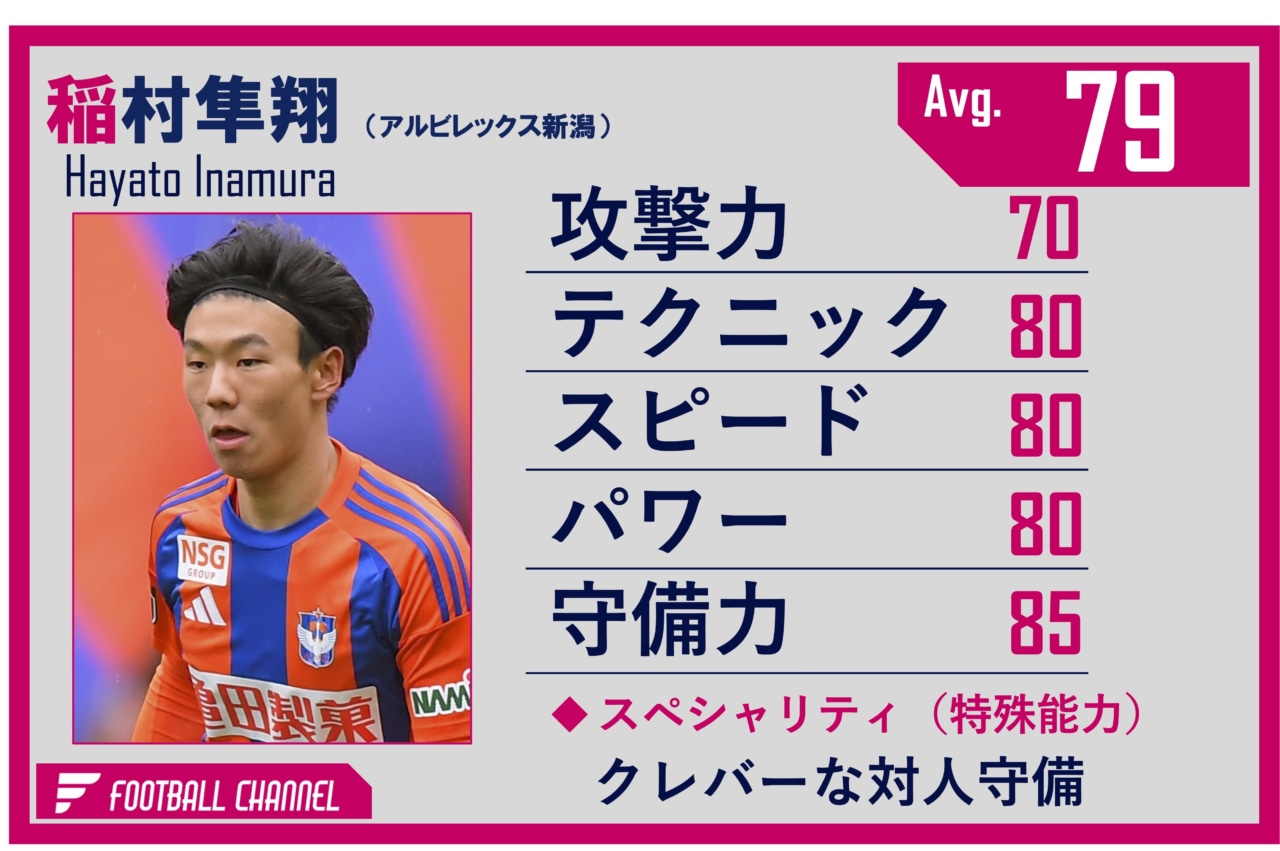 能力値:79(攻撃力70、テクニック80、スピード80、パワー80、守備力85)