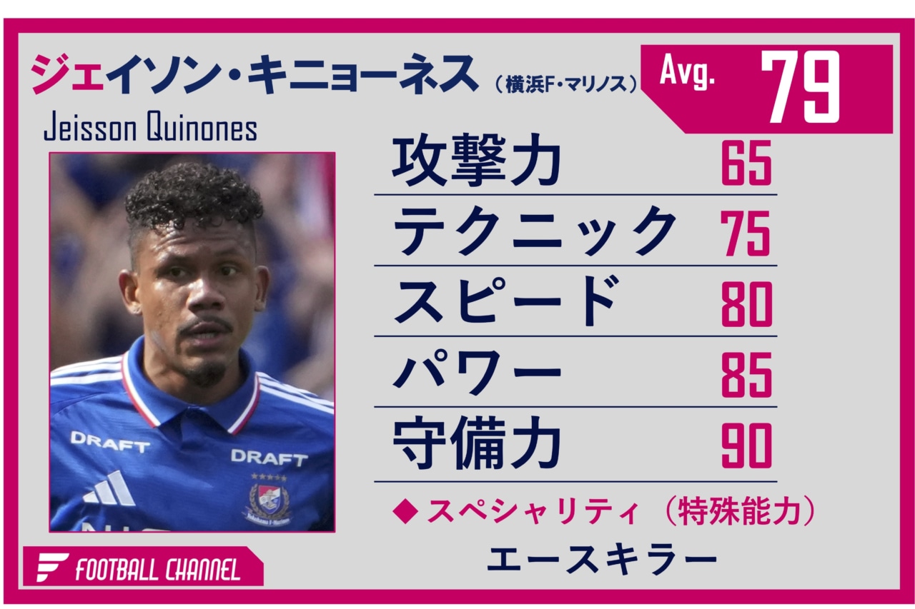 総合的なディフェンス能力の高いセンターバックで、新加入ながら守備の要として存在感が際立っている。スティーブ・ホーランド前監督の求める戦術タスクもしっかりとこなしながら、レスポンスと瞬発力の高さで、相手のショートカウンターを封じる。裏を取られかけても、リカバリーできるだけのスピードがあり、ファウルなしで潰し切るディフェンスはキニョーネスの見せ場だ。