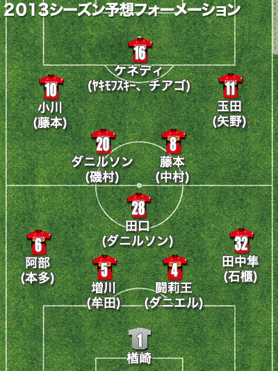 そして今オフ、永井謙佑がベルギーのスタンダールリエージュへ完全移籍し、金崎夢生が契約満了でチームを離れ、貴重なアタッカー2枚を欠く事態となった。永井は昨シーズンのチーム得点王であり、ロンドン五輪でもそのスピードを存分に生かして力を発揮した。金崎は不本意なシーズンを送ったかもしれないが、この2人が3トップの両翼を務めることも多く、レギュラークラスのアタッカーが2枚同時にチームを離れたことは、純粋に戦力的なことを考えれば非常に痛い。