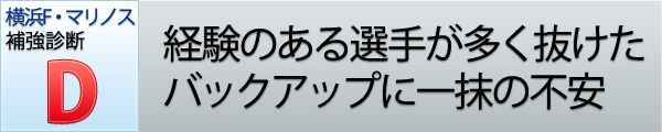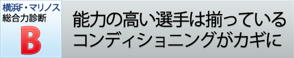 チームを離れた選手が多かったとは言え、昨シーズンのレギュラークラスは小野を除いてほとんどの選手がチームに残っている。マリノスにはもともと多くの経験を持ち、能力の高い選手が揃っている。昨シーズンもマルキーニョスの離脱もあり序盤は躓きを見せたが、そこから良く盛り返して最終的にリーグ戦は4位まで順位を上げた。ベテランが多いため、シーズンを通したコンディショニングが大きなカギを握る。