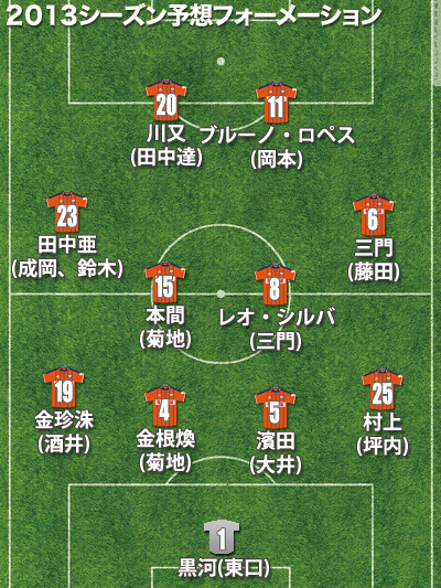 昨シーズンの失点数は、2011シーズンの46から34へと大幅に減っている。特に柳下監督が就任してからは、試合の流れによっては6バックのような状態になることも厭わず、まずは早い時間帯での失点を防ぐことに注力していた印象がある。その結果、苦しい試合でも粘り強く戦って引き分けに持ち込む機会が増え、少しずつ勝ち点を積み重ねていけるようになった。それが最終節での劇的な残留劇に繋がったと言えるだろう。