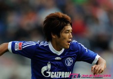 内田は間を持たせず前方のファルファンへ。ここからファルファンを外側から追い越しにいく流れで、相手のグロスクロイツが外に開くと、ファルファンはインサイドのスペースに出て来たヘーガーにパス。そこから中に流れ、相手の左サイドバックであるシュメルツァーを引き付けながらリターンを受け、素早い反転からの縦パスで内田を加速させた。