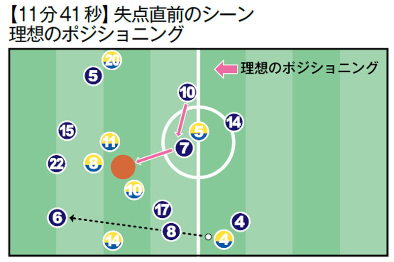 フリーでシュートを打たせた遠藤と香川のポジショニング