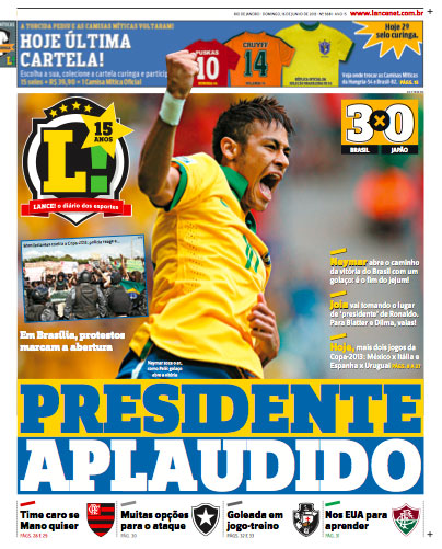 試合前のセレモニーで挨拶したジウマ・ルセフィ大統領に対する異例のブーイングを引き合いに、ネイマールを大統領的な存在として例えた最大手のスポーツ紙「ランセ」は一面大見出しで「PRESIDENTE APLAUDIDO(賞賛された大統領)」の文字を掲げ、ネイマールの活躍を賞賛した。