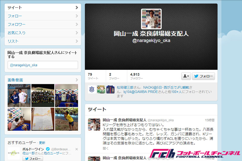 そんなメッセージをおくった岡山は、今年8月から、奈良クラブのアマチュア選手兼クラブ職員として活動している。「奈良劇場総支配人」の肩書きで積極的に発せられるつぶやきは、今後も注目を集めそうだ。