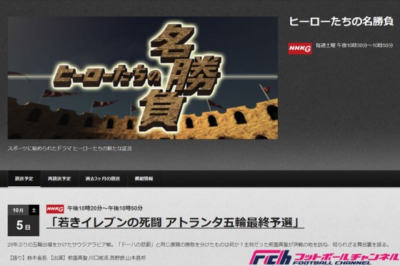 10月5日、NHKで放送された「ヒーローたちの名勝負」では、28年ぶりのオリンピック出場を決めた若き日本代表の激闘を特集。1996年のアトランタ五輪出場を決めたアジア最終予選、サウジアラビア代表戦での「知られざる真実」を明かしたものとなった。
