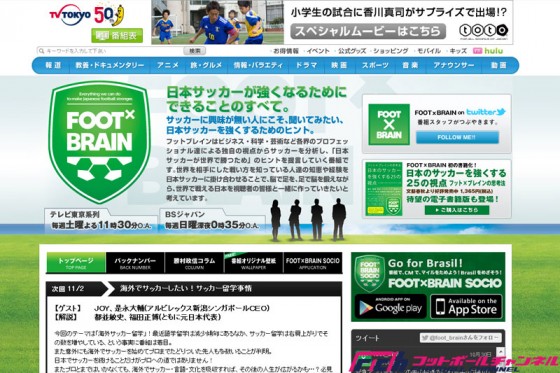 26日に放送されたテレビ東京「FOOT×BRAIN」の特集は、11月2日に開催されるヤマザキナビスコカップ決勝戦に向けて、「カップ戦のあり方を考える」。ゲストには、ジェフユナイテッド千葉時代にナビスコカップを連覇している東京ヴェルディのFW巻誠一郎が登場した。