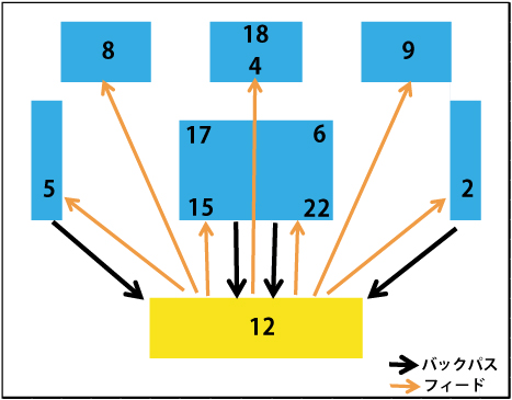 オランダは序盤、ウィングのロッベンとレンスがSBをチェックし、トップのS・デ・ヨングと攻撃的MFのストロートマンとファン・デル・ファールトが日本のCBとボランチの“ボックス”にプレッシャーをかけてきた。