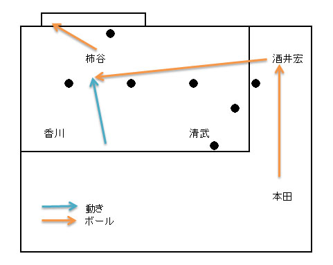 縦への揺さぶりがディフェンスラインにズレを生じさせる