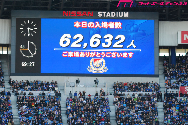 まずは横浜F・マリノス対アルビレックス新潟が行われた日産スタジアムの観客数。優勝が決まるかもしれない大一番ということもありなんと「62,632人」が来場。