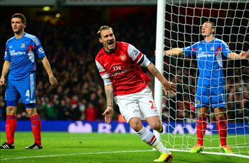 アーセナルは73分、ベントナーとロシツキを下げて、ウォルコットとウィルシャーを投入。80分にはラムジーに代えてアルテタを投入して、中盤の安定を図った。
