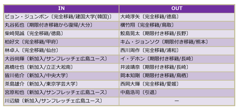 昨シーズン、連覇を果たした王者・サンフレッチェ広島は、大掛かりな補強を行わなかった昨季から一転して、積極的な補強を見せた。リーグ3連覇に加え、昨季1勝も出来ずに敗退したACLでの汚名返上へ向け戦力の底上げを図った。