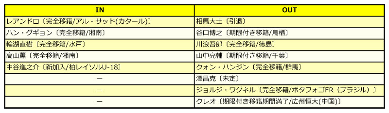2014シーズン 戦力入れ替え