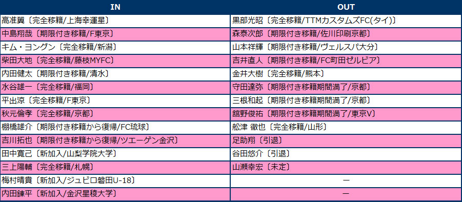 開幕からしばらくは中位を維持したものの、リーグ中盤戦からは下を気にしながらの戦いになってしまった昨季。ただ、終盤戦に入ると自身初の二ケタ得点を記録した苔口を始めとする攻撃陣が結果を残せるようになり、勝ち切る試合も増えてきた。今季は昨季終盤の良い流れを継続し、今度こそ残留争いからの脱却を果たしたい。昨季の攻撃を支えた苔口、白崎が残留し、新たに中島も加えた陣容をもって、一皮むけるシーズンとしたい。
