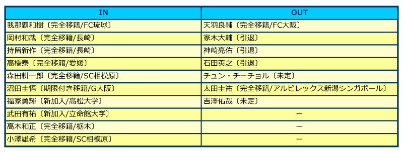 また、「ベテランが多いので力を合わせて若手を引っ張りたい」と語る元日本代表FW我那覇和樹は練習試合を通じ、ポストプレーとファーストディフェンスで高い精度を発揮。その一方で、昨年J2昇格の原動力となった木島良輔、高橋泰の開幕出場は難しいため、開幕からしばらくは中盤底に山本翔平、その前に藤田と岡村和哉が入る「4-3-3」を選択することになりそうだ。