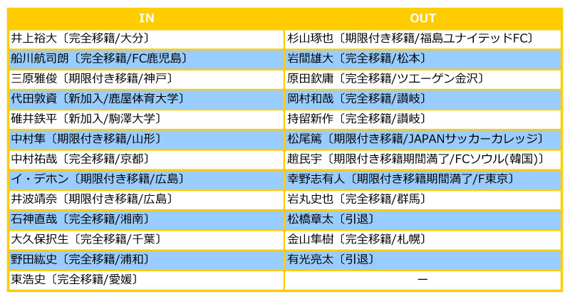 2014シーズン 戦力入れ替え