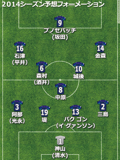 サイド攻撃を重視する[4-3-3]システムの中で得点力のカギを握るのは、中央で構えるセンターFW。そしてその座を争うのは、昨季二ケタ得点を挙げた坂田、来日2年目を迎えるプノセバッチ、そしてガンバ大阪から新加入の平井だ。三者三様の特長を持つ彼らをプシュニク監督が生かし切れれば、リーグでも有数の破壊力を手にできるだろう。その先に上位進出も見えてくる。