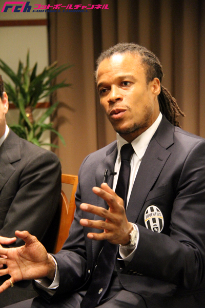 ゴーグルをサングラスに掛け替え、トレードマークのドレッドヘアーもそのままに、ユヴェントスのスーツに身を包んでイタリア人スタッフと思しき女性と通路で立ち話をするエドガー・ダーヴィッツの佇まいは、さながら休息中の戦士といった感じで、ただ、穏やかに会話しているだけなのに、なにやらもの凄いエネルギーが漲っているのである。
