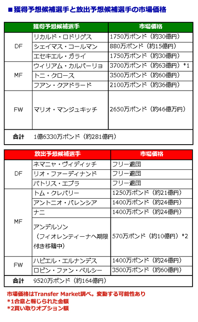 21歳のポルトガル代表ウィリアム・カルバーリョに関しては、既に3700万ポンド(約63億円)での合意が伝えられている。市場価格700万ポンド(約12億円)の選手に約5倍の金額は払い過ぎだが、それだけ確保したい逸材と判断したのだろう。実際、強靭なフィジカルと激しい守備はモイーズ監督とフィットするはずだ。