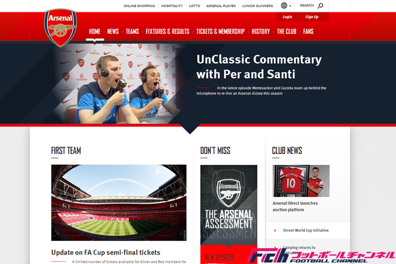 アーセナル公式ホームページ