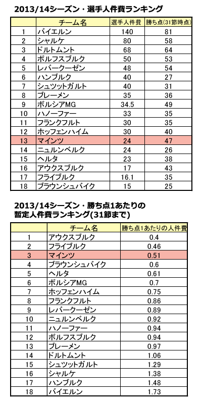 それに対して、安定性という面で抜群のコストパフォーマンスを誇っているのがマインツだ。