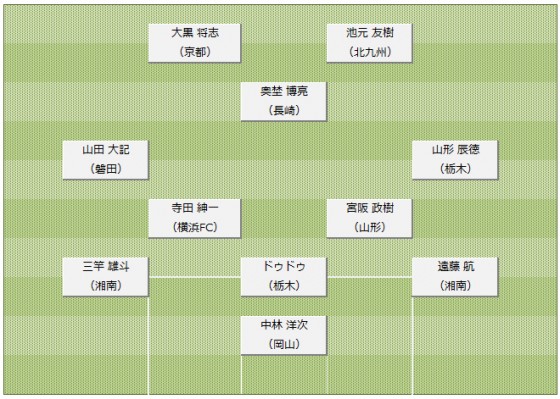「FootballLAB」が選ぶ4月のJ2のベストイレブンは下図の通りとなりました。