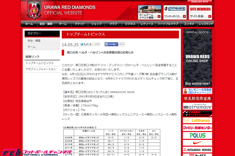 同記事は移籍金の額を明らかにはしていない。また同日、浦和レッズも公式HPにて原口のヘルタへの移籍を発表している。