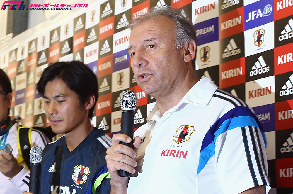 日本代表のアルベルト・ザッケローニ監督は、現地時間21日の練習を急遽オフに変更し、即席で会見を行った。