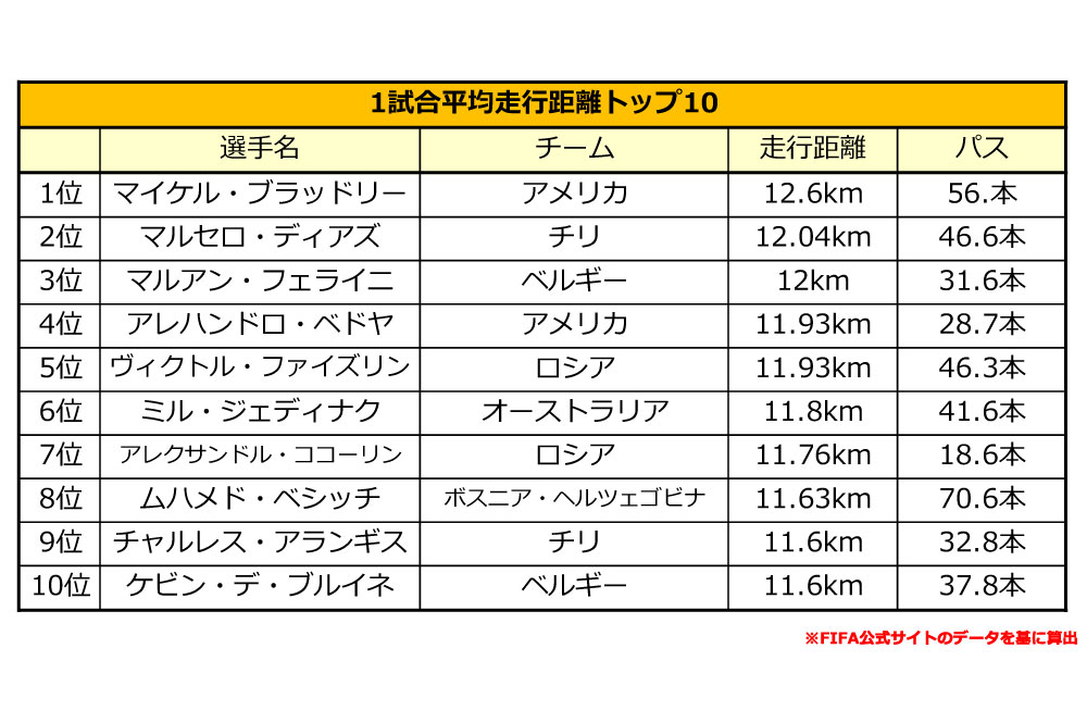 そして、注目して欲しいのはパス成功本数で5位、走行距離で8位に入ったボスニア・ヘルツェゴビナ代表のムハメド・ベシッチだ。この21歳のボランチは、1試合平均11.63kmを走り抜き、70.6本ものパスを繰り出したのだ。まさに現代サッカーに相応しい“ハイブリッド”な選手と言えるだろう。