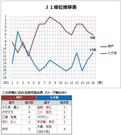 中断明け以降の2戦では神戸が1分け1敗と勝ちがなく、一方のG大阪は2勝。