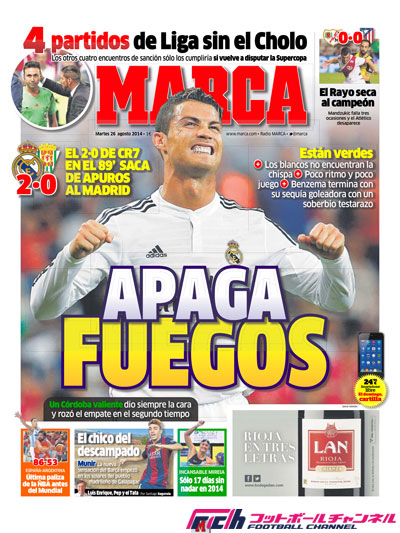 マルカ紙は「火消しをしろ(問題を解決しろ)」「マドリーは火花(ひらめきなど)を見せられなかった」「少しのリズム、少しのプレー」など、不調ぶりをアピール。