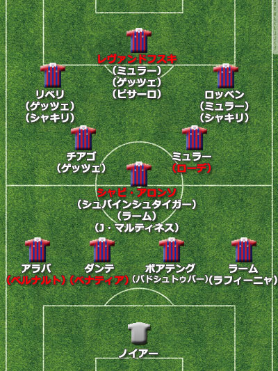 マンジュキッチ、クロースが退団し、ファン・ブイテンが引退したものの、レヴァンドフスキ、シャビ・アロンソ、ベナティアとトップクラスの戦力を補強。さらに、ローテーション要因となるローデやベルナルトも他クラブであれば主力を担える実力があるだけに、確実に戦力アップに成功した。