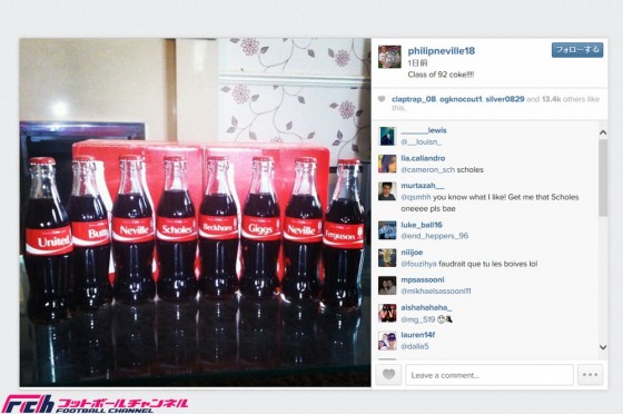 マンUコーチ退任で暇になったフィル・ネビル。コカコーラのネームボトルで「92年生」を揃える