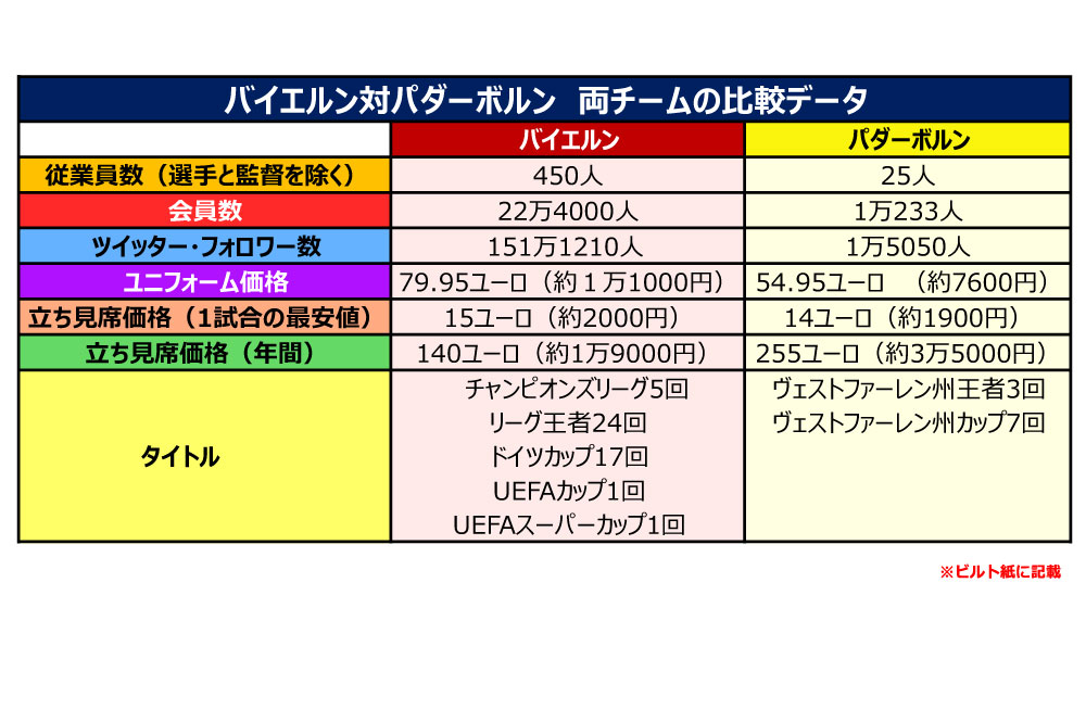 ビルト紙記載の両チームを比較するデータは次のとおり。