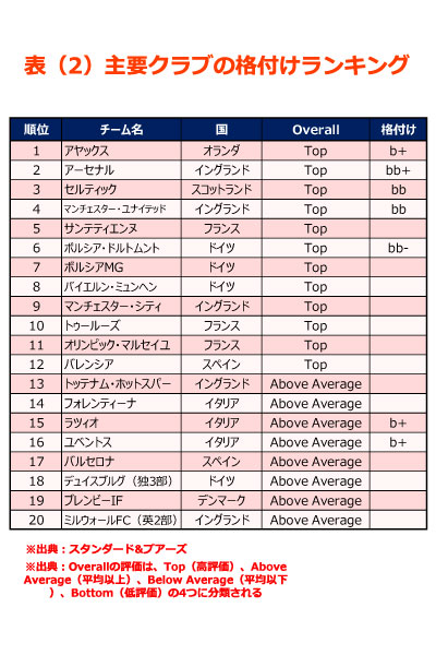 なかでも世界を代表するスタンダード&プアーズ(S&P)はこの度、欧州サッカーの主要クラブについての格付けを発表した。