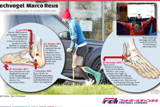 ブンデスリーガ第12節のパダーボルン戦で右足首靭帯を断裂し、2014年だけで6度目の離脱となったロイス。それでも、スポーツドクターのトルステン・ドラー氏の見解によれば「不幸中の幸い」だったようだ。