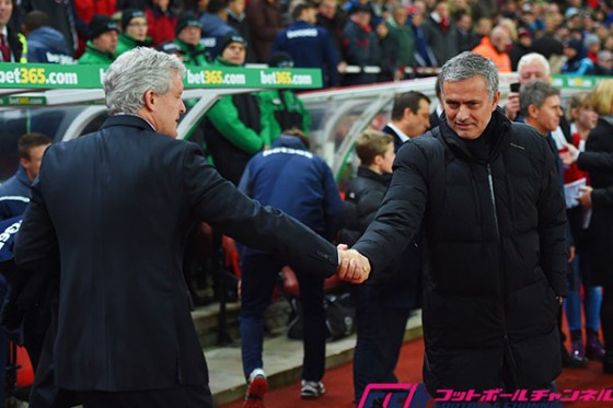 ストークのヒューズ監督と握手を交わすモウリーニョ【写真:Getty Images】