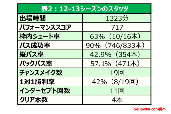 しかし、見逃せないのは縦パス率だ。昨季も今季前半もわずかながら50%を上回ったものの、12-13シーズンは42.9%。バックパス率が57.1%と過半数を上回っていた。