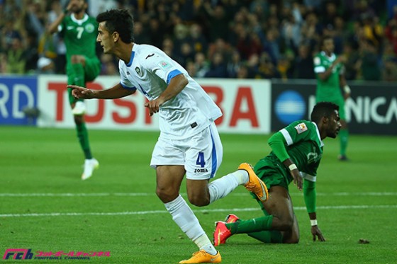 試合はいきなり動く。2分、サウジアラビアDFのミスを見逃さず、ボールを奪ったラシドフがスピードに乗ってエリア内に侵入。GKの股を抜く左足シュートでウズベキスタンが幸先よく先制した。