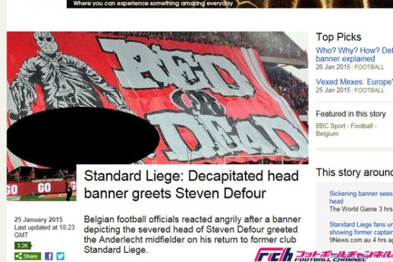 アンデルレヒトのベルギー代表MFスティーブン・デフールが、25日に行われたベルギー1部リーグ第23節、日本代表GK川島永嗣が所属するスタンダール・リエージュとの試合で古巣サポーターの挑発に激高し、故意にスタンドへ向けてボールを蹴り、2枚目の警告を受けて退場処分に科された。同日の英『BBC』などが一斉に報じた。
