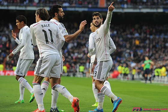 押し気味に試合を進めるマドリー。前線の3枚が躍動し始める中で迎えた23分、PA内でボールを持ったイスコが右足でコースを狙ったシュートを突き刺し、マドリーが先制点を奪った。
