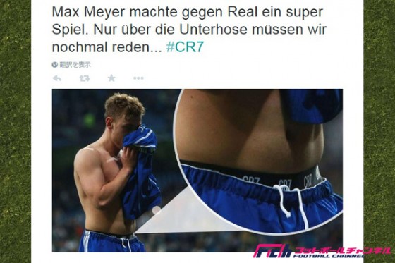チャンピオンズリーグ(CL)2ndレグでレアル・マドリーとアウェイで対戦し、勝利したシャルケ。そのシャルケの若手MFマックス・マイヤーの下着を12日のドイツ紙『ビルド(公式ツイッター)』がとらえた。