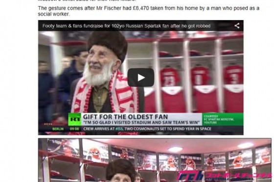 第二次世界大戦も体験した1913年生まれのフィッシャーさんは30年代からスパルタクを応援し続けている筋金入りのファン。フィッシャーさんが社会福祉業者を装った詐欺師に73万ルーブル(約150万円)をだまし取られたというニュースが報じられると、スパルタクは全力を挙げて援助活動に当たった。
