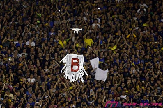 また、この試合のハーフタイムから中断中にかけて、「リーベルの亡霊」を意味する白地に赤で「B」と書かれた布を吊るしたドローンがピッチ上空を舞った。