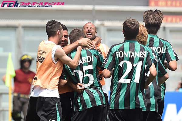 サッスオーロの狙いは明確だった。支配率ではミランの54.8%に対してサッスオーロは45.2%と下回りながらも、積極的な縦方向へのロングパスと前線の選手の走り出しでスピードの劣るミランDFの裏を狙っていた。