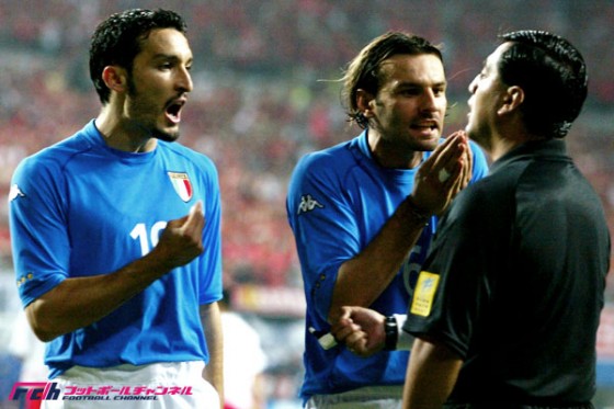 日韓ワールドカップではイタリアは決勝トーナメント1回戦でホスト国である韓国と対戦した。この試合でイタリアは、FWフランチェスコ・トッティがシミュレーションによって退場。延長戦ではゴールが認められなかったこともあり1-2で敗北している。