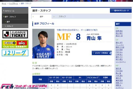 2006年に名古屋でプロデビューした青山は、C大阪を経て、2009年に徳島に入団。J1昇格を果たした2013年はチームの主力だったが、昨季は怪我もあって不完全燃焼に終わった。徳島では計6シーズンにわたってプレー。通算成績はJ1で7試合0得点、J2で132試合3得点を記録している。