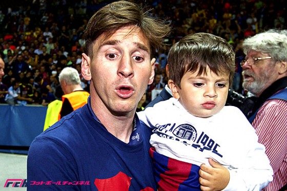 バルセロナのリオネル・メッシと息子のチアゴ【写真:Getty Images】
